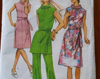 70s Retro Belted Dress Tunic And Pants Simplicity 9329 Bust 41 Vintag A Vintage Shop